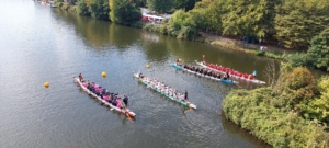 Am Samstag, dem 06.09.2025, war es endlich wieder soweit. Insgesamt 21 Leute, bestehend aus einem Schulkind als Trommelkind, Lehrkräften, pädagogischem Personal und Freunden der Katharinenschule, traten zum achten Mal beim Drachenbootrennen an. Bei herrlichem Wetter, einer guten und ausgelassenen Stimmung im Team und dem entsprechenden Kampfgeist an Bord hieß es um 9:10 Uhr das erste Mal „Ready, Attention, Go“.