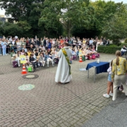 Am Donnerstag, den 28. August, feierten wir die Einschulung unserer Robben-, Roten-Panda- und Eulenklasse. Der Tag begann mit einem fröhlichen Gottesdienst, musikalisch begleitet vom Chor, Instrumentalkreis und den Flötenkindern. Mit Liedern wie „Einfach spitze, dass du da bist“ hieß die Schulgemeinschaft die neuen Kinder herzlich willkommen.