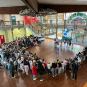 Am Freitag nach der Pause war es dann endlich soweit. Die Kinder der Erdmännchenklasse zählten die Vorteile vom Laufen auf und dann wurde endlich verkündet, dass die Schulwegwette mit 1.341 Hinwegen gewonnen wurde.